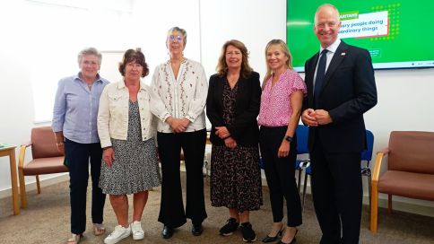 His Excellency and Lady Kyd visited Samaritans Jersey on Thursday 9th April 2026. During the tour, they met the Trustees, Deputy Directors of Training, Rota, Outreach, Prison Team and Volunteer Welfare. Lady Kyd presented certificates to three long serving members of staff for their voluntary service to the Samaritans.